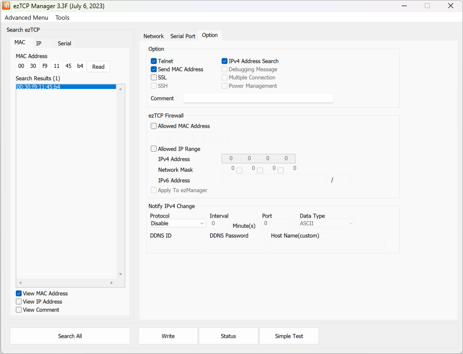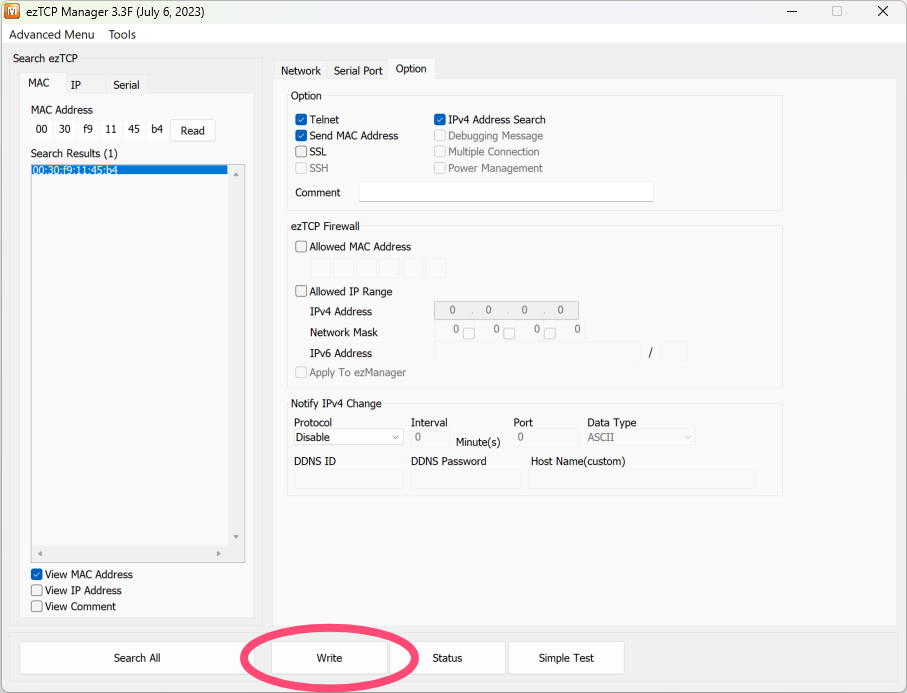 5. You can identify your converter in the column "Search Results" by its MAC address.