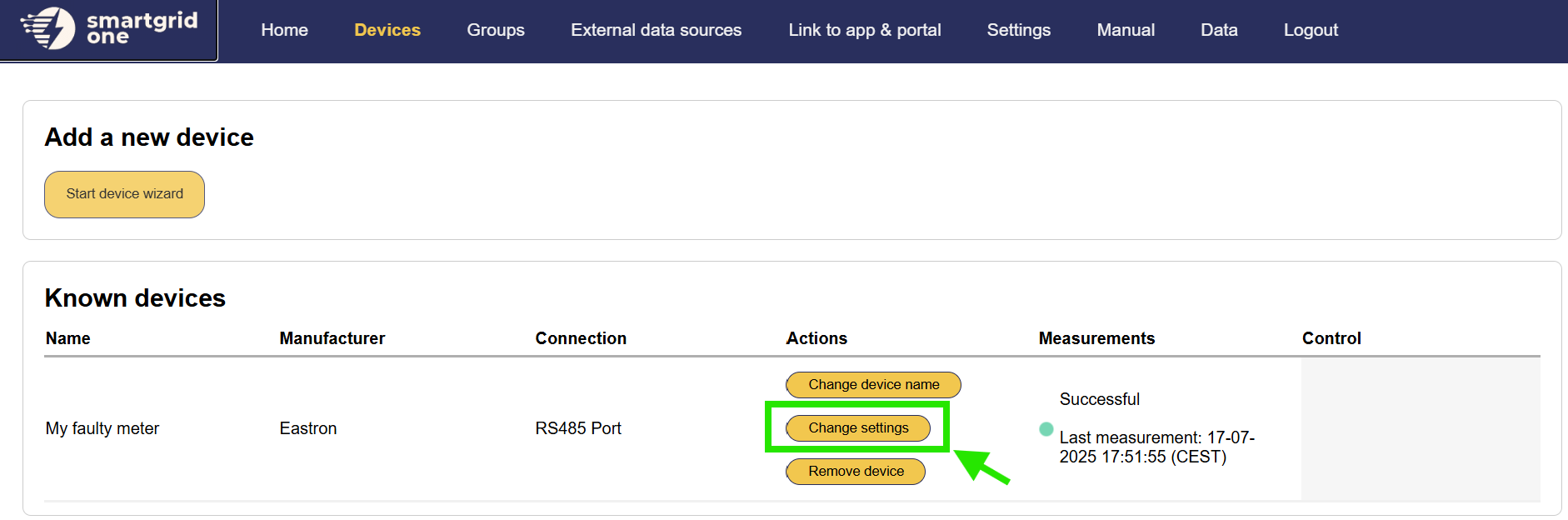 For stable functioning of the control system, it is important that the SmartgridOne Controller knows the correct scaling factor of each energy meter.
