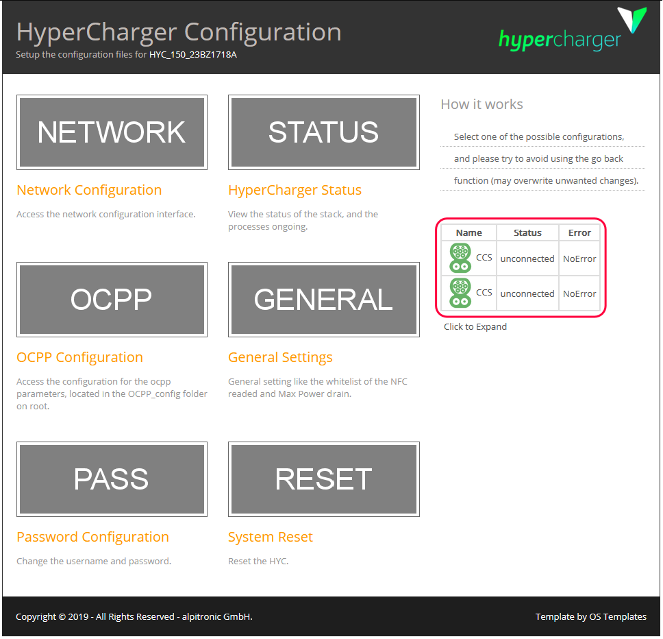 External control of the charging station must be activated in the configuration menu via the web page of the charging station. To do this: