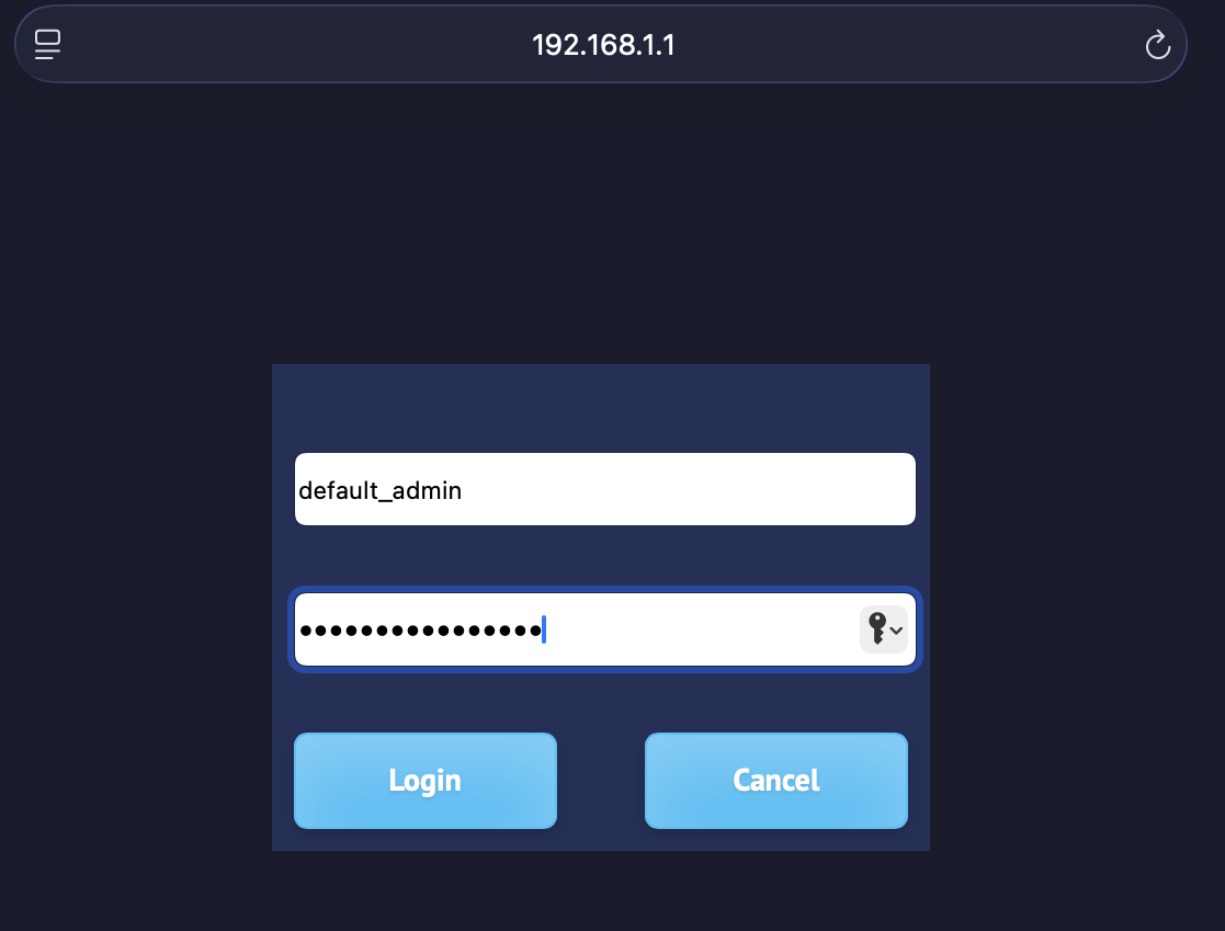 The default username is default_admin and the default password is Default_Admin22! (pay attention to the capital letters).