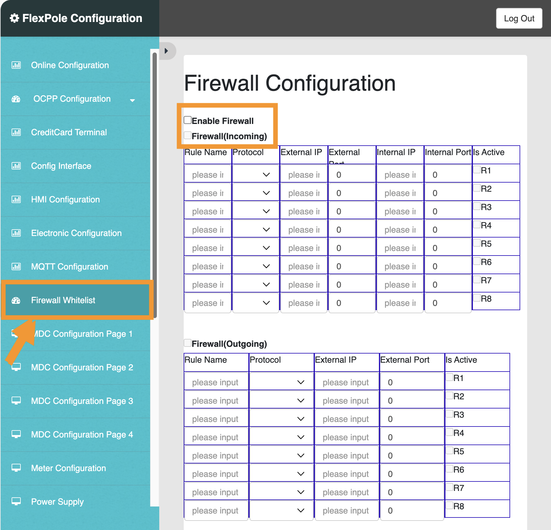 - Enable the firewall, and create a whitelist entry for the SmartgridOne Controller on port 502. You need to use the SmartgridOne Controller IP-address here.