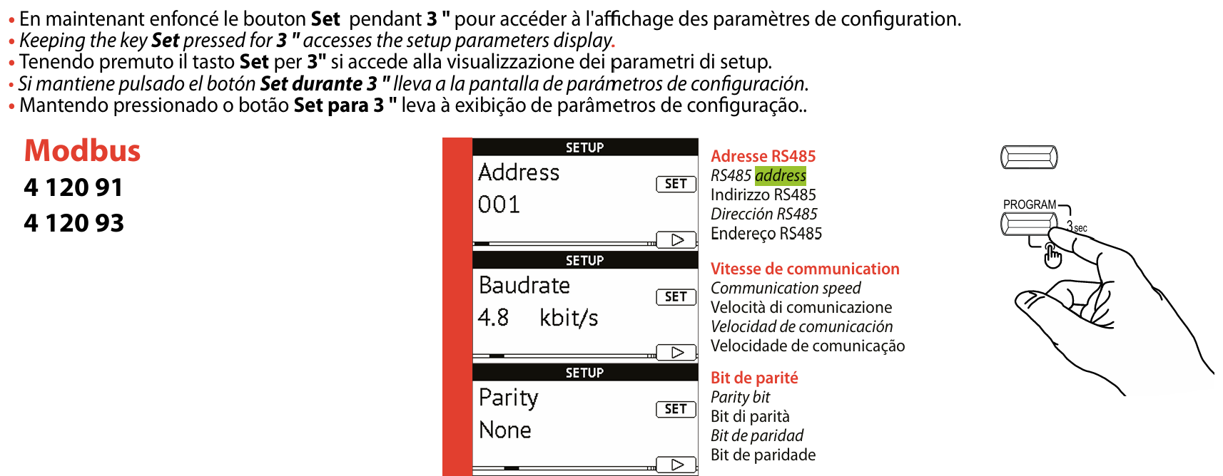 - You MUST give each device on the RS485 bus a unique address. Check the manual of the device on how to do this.