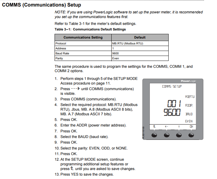 - For each device, it is generally recommended to stick with the factory default baud rate, parity, and stop bits. The SmartgridOne Controller will scan on those first.