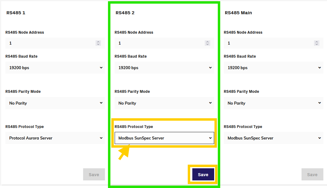If Sunspec is supported, we recommend using the Sunspec protocol. If Sunspec is not supported, you can use the "Aurora Power One" protocol.