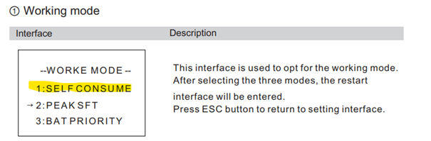 - Set the working mode to Self Consume.