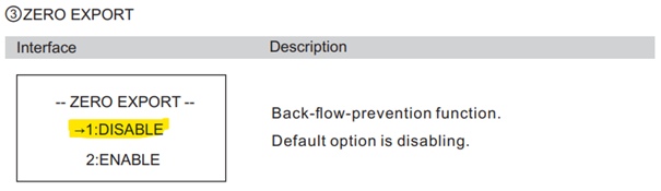 - Set Zero Export to Disable.