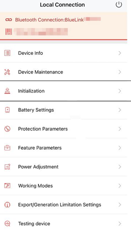 | Open ESAJ Home and connect to the inverter | |