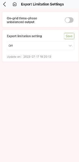 | Disable Export limitation (if it is enabled power from the inverter cannot be fed into the grid). | ![]() |