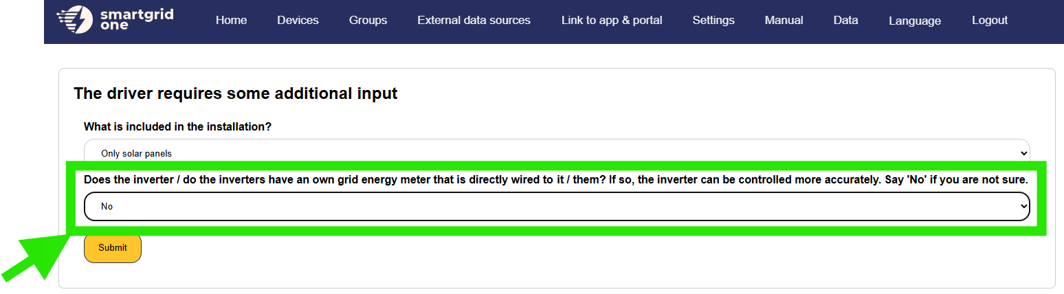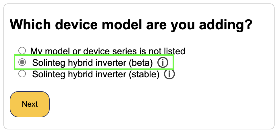 - The Solinteg grid meter is not supported when having multiple Solinteg inverters. When importing a Solinteg, use the following setting: