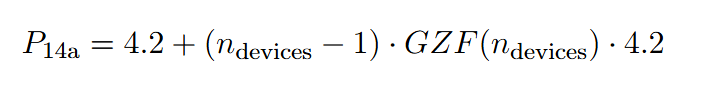 The §14a formula is used to calculate the allowed grid import limit for all controllable devices. The limit differs based on the number of devices, and it can be affected by total nominal power per device type.