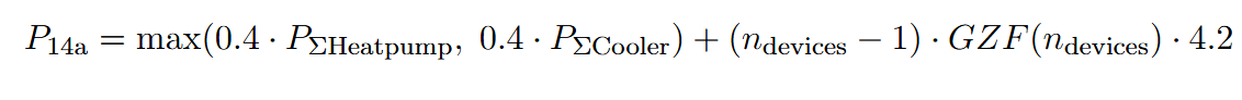 If the sum of the grid connection power of heatpumps or coolers is larger than 11kW, we use the following formula: