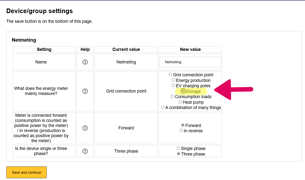 In case of multiple batteries or battery containers: Yuso steers the batteries as one virtually aggregated BESS. For correct configuration please select the group in which the batteries are located. It is crucial that all batteries in this group are controlled by Yuso. There must be no other devices or batteries in the group. [!NOTE] See also "grouping devices".