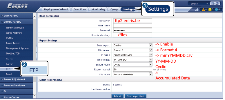 The smartlogger can export CSV-files via FTP. These CSV-files contain production and configuration data.