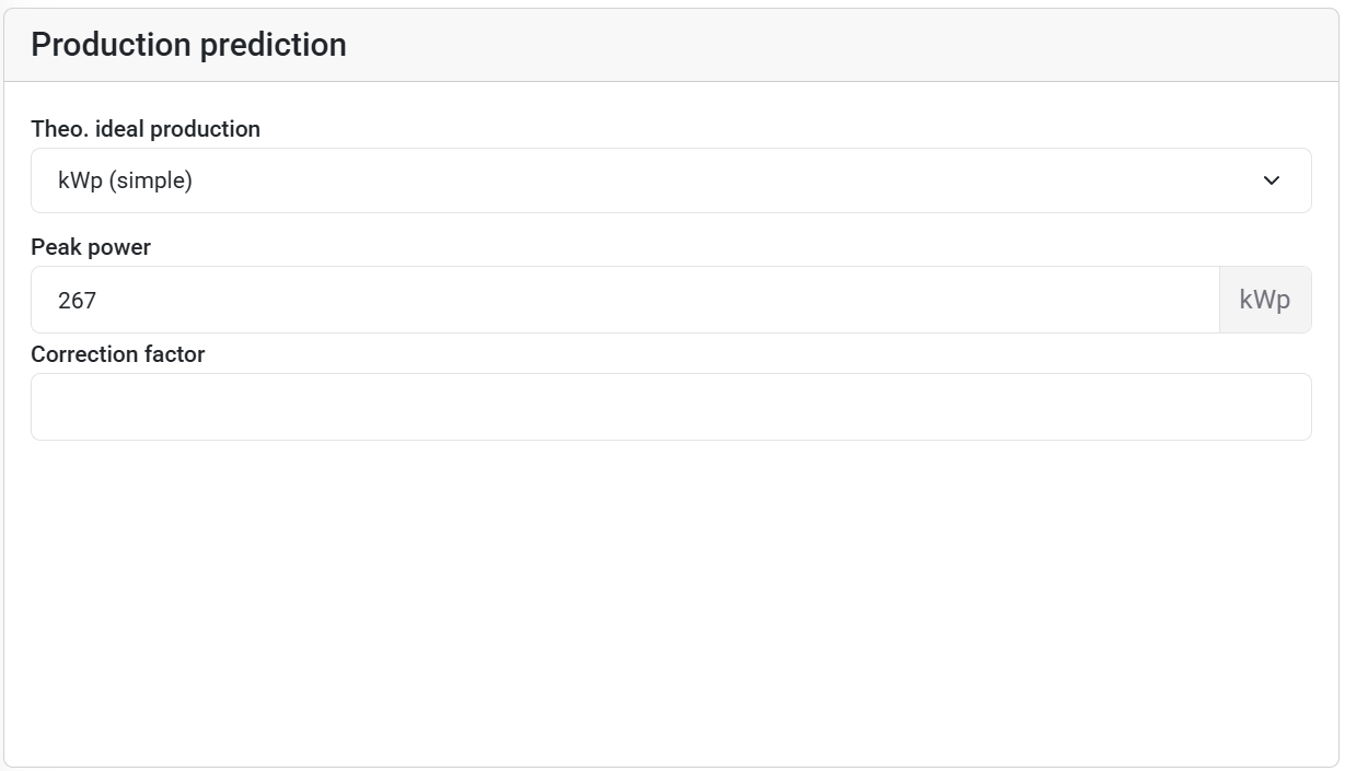 This method lets the system calculate expected production using your performance ratio and installation size.