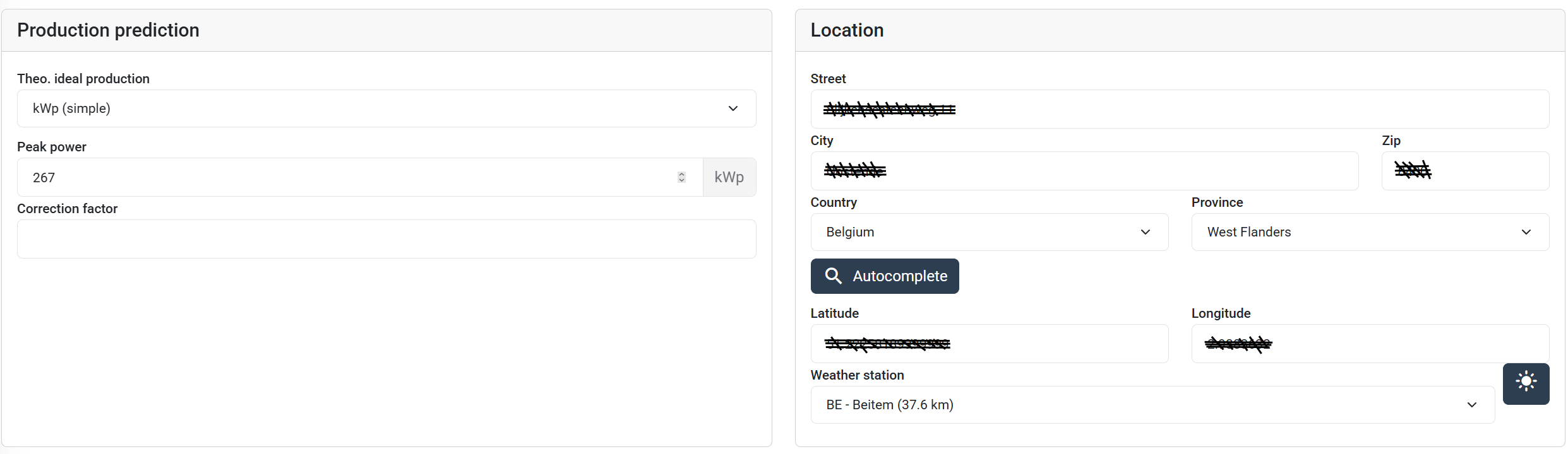 - Fill in your panel configuration or specify the total kWp of your installation. You can do this on the Settingspage of you installation.